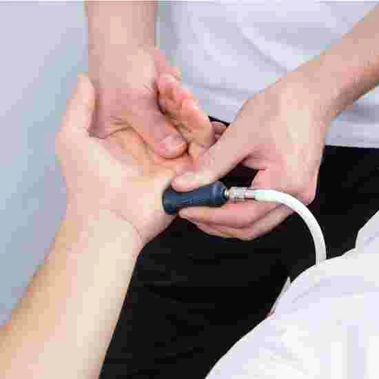 The BellaBambi “Multi” includes one cupping cup with an internal diameter of 2 cm and one of 3.4 cm. They feature a peeling edge, which creates a shearing effect on the skin. The good-grip surface makes them easy to use – even when working with skin care products. Particularly practical: after use, the cupping cups can be conveniently cleaned in a dishwasher. Using the connecting hose included, the cupping cups are attached to the “Multi” device. The device creates a consistent vacuum with a pressure of -130 to -280 mbar. This negative pressure lifts the fascia layer – restoring the fascia’s mobility.