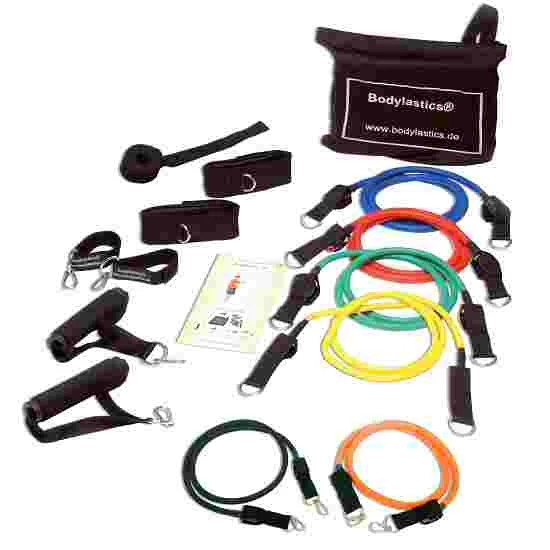 The Bodylastics complete set contains various tubes with different levels of resistance and includes a door anchor and door roll to easily attach the equipment. Foam grips, hand and foot straps, a nylon bag and an exercise guide for a varied training session.