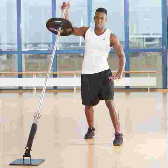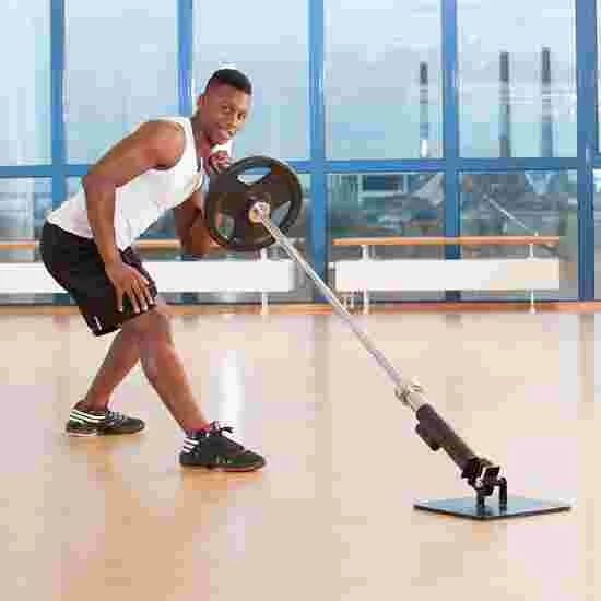 The barbell trainer is an ideal training apparatus for upper body training. The device has a barbell holder for bars with a diameter of 30 or 50 mm. Thanks to the double joint, the barbell can be moved in any angle, making a variety of exercises possible. A non-slip underside ensures a high degree of safety when training. The difficulty level can be increased by adding more weight discs.
