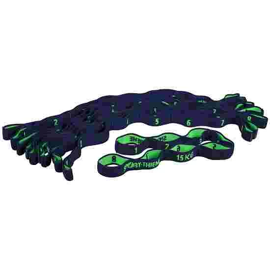 The Sport-Thieme elasticated textile band set consists of fitness bands made from stretchy latex and polyester fibres. The materials also make the resistance band perfect or use in water. Every fitness band has eight loops allowing for various different grip positions. In addition, you can comfortably put your feet through the particularly long loops. The resistance bands are available in different resistance levels, meaning your students can easily adapt workouts to their fitness level. For example, the 7-kg band is ideally suitable for children.