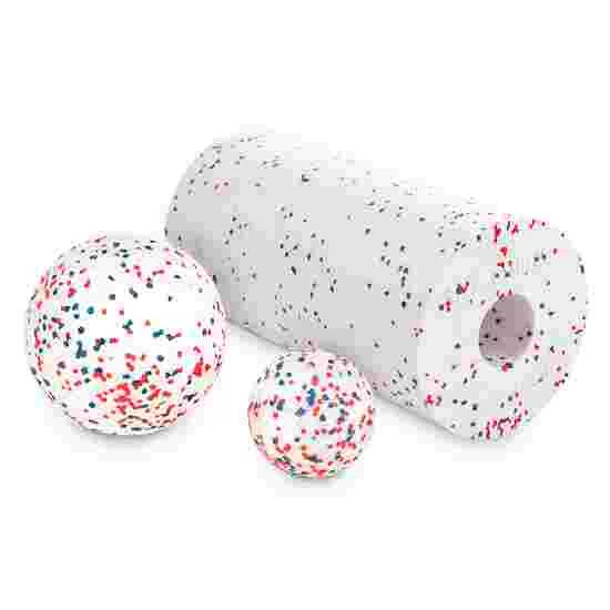 The Sport-Thieme fascia set contains a 30-cm-long fascia roll, which is ideal for treating large areas of the body such as the back or legs. In comparison, the fascia balls included in the set allow you to treat particularly hard-to-reach areas of the body. The balls also have a small recess, which prevents them from rolling away. The balls and the roll are made of EPP and are temperature-resistant up to at least 110°C. Depending on preference and fitness level, the set is available in the Soft and Standard versions.