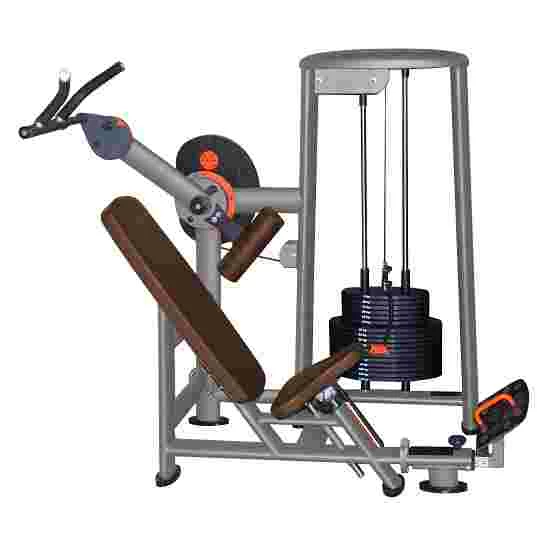 With the Sport-Thieme “OV” pullover machine you can work out in a way that matches your fitness level. This is possible thanks to the variable weight stack, which can be adjusted in 5-kg increments. The maximum pullover weight is 100 kg – making this the perfect machine for strengthening the chest muscles in beginners and pros alike. Simply hold the ergonomically shaped handles and pull the bar towards your chest. Set the optimum height on the seat with ease. The footrest can also be adjusted accordingly and is textured so that your feet do not slip off. Rubber buffers under the posts give the pullover machine the necessary stability. Due to its high load capacity and sturdy oval tubing, this training aid is ideal for continuous use in the gym.