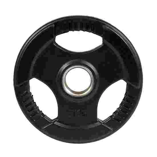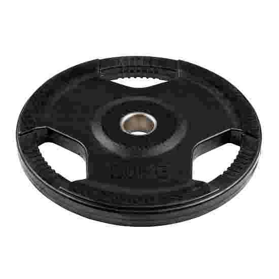 These rubberised competition weight discs are made for intensive use in competitive sports and strength training. Thanks to the rubber coating, ground surfaces in exercise rooms and sports halls are optimally protected should a disc come off. They also make much less noise. A stainless steel ring in the hole makes putting them onto the barbell easier.