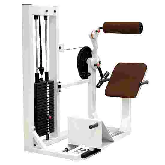 With the Sport-Thieme “SQ” back extension machine, you can adjust the back padding to suit your needs – the further forward you have it, the greater the stretching effect. Lean on the integrated support with your buttocks and start to push the padding backwards with your back. This is easy to do thanks to the side handles and the footrest. The training device is made of a high-quality metal square tubing and withstands high loads. Workouts are suitable for beginners and professionals thanks to the weight stack, which can be adjusted in 5-kg increments. This is the ideal strength machine for daily professional use in the gym.